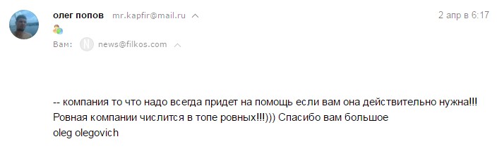 Оригинальный отзыв клиента