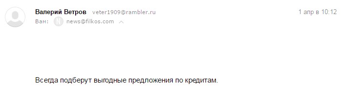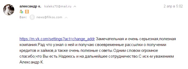 Замечательная и очень серьезная и полезная компания. Рад, что узнал о ней. Получаю своевременные рассылки о кредитах и займах, а также очень полезные советы. Одним словом - огромное спасибо за то, что Вы есть. Надеюсь на дальнейшее сотрудничество.