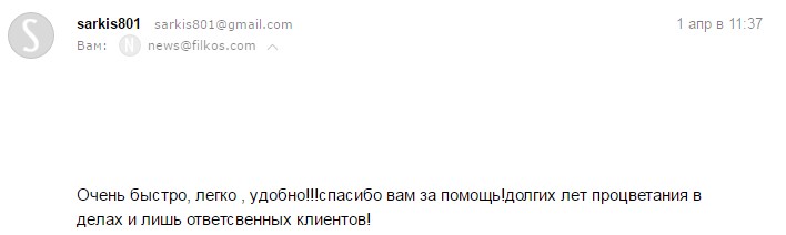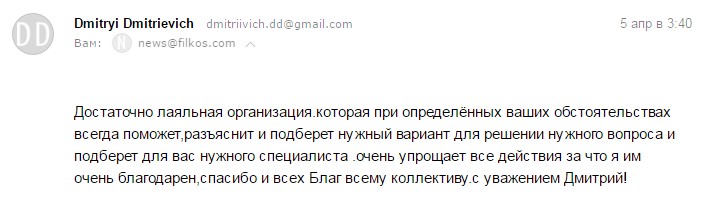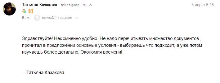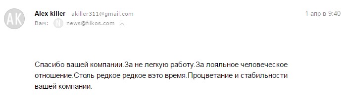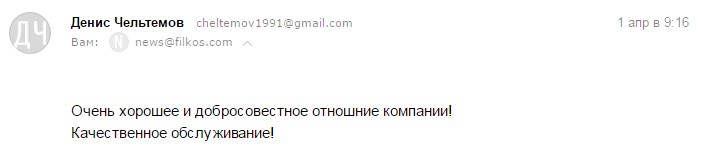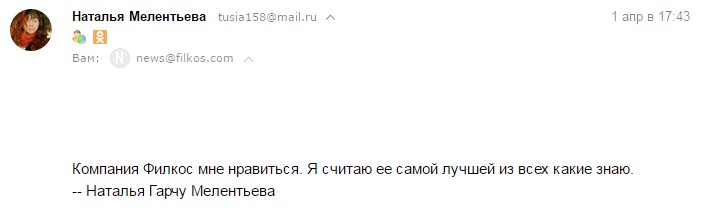 Компания Филкос мне нравится. Я считаю ее самой лучшей из всех какие знаю.