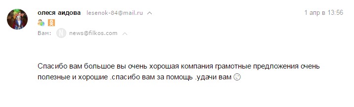Спасибо вам большое, вы очень хорошая компания. Грамотные предложения, очень полезные и хорошие. Спасибо вам за помощь. Удачи вам.
