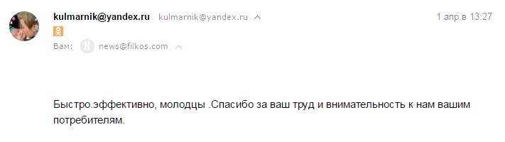 Быстро, эффективно, молодцы. Спасибо за ваш труд и внимательность к нам вашим потребителям.